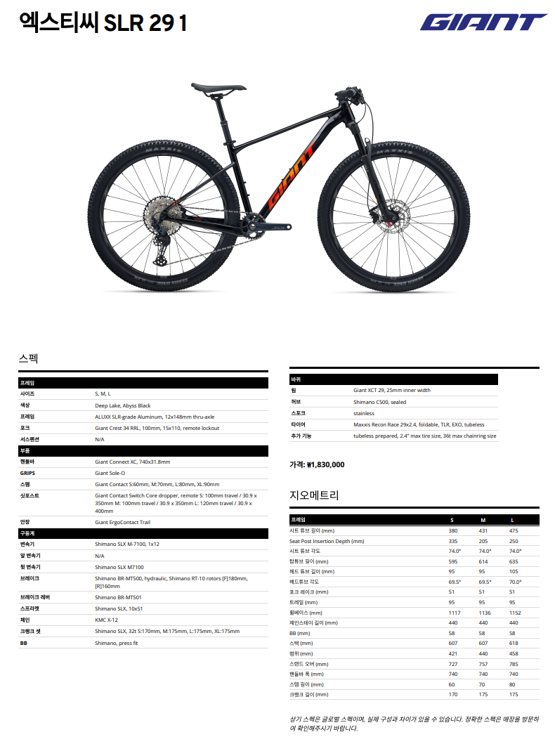 26년 자이언트 엑스티씨 SLR 29 1 / GIANT XTC SLR 29 1