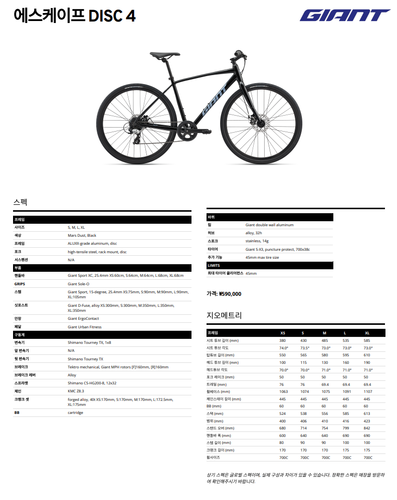 26년 자이언트 에스케이프 4 Disc / GIANT Escape 4 DISC 4