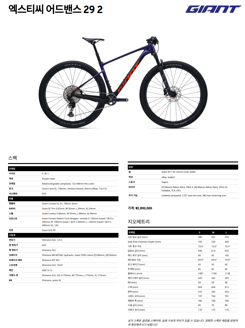 26년 자이언트 엑스티씨 어드밴스 29 2 / GIANT XTC ADV 29 2