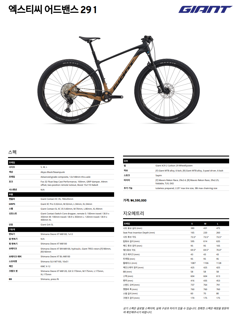 26년 자이언트 엑스티씨 어드밴스 29 1 / GIANT XTC ADV 29 1